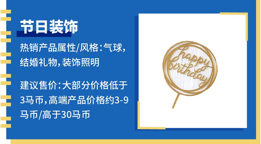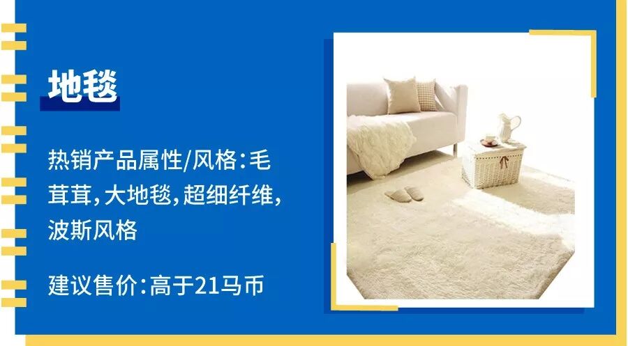 家居装饰是马来的家居生活品类(Home & Living)下销量较好的子类目,卖家可以看看节日装饰、小礼品(伴手礼)、结婚礼品和其他在1-3马币范围内销量相对较好的小商品。