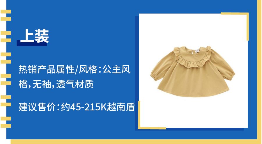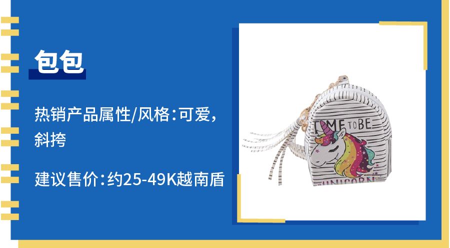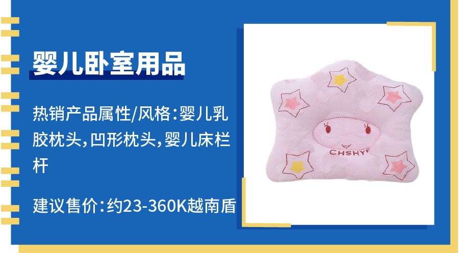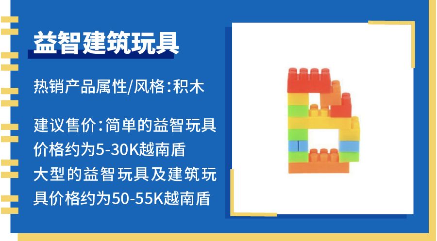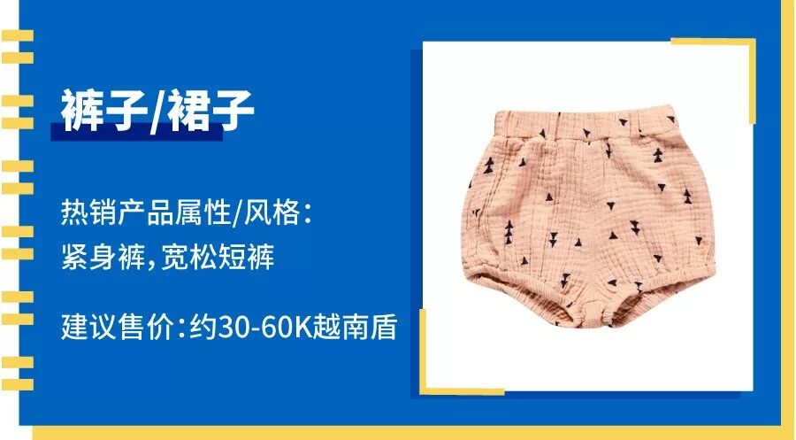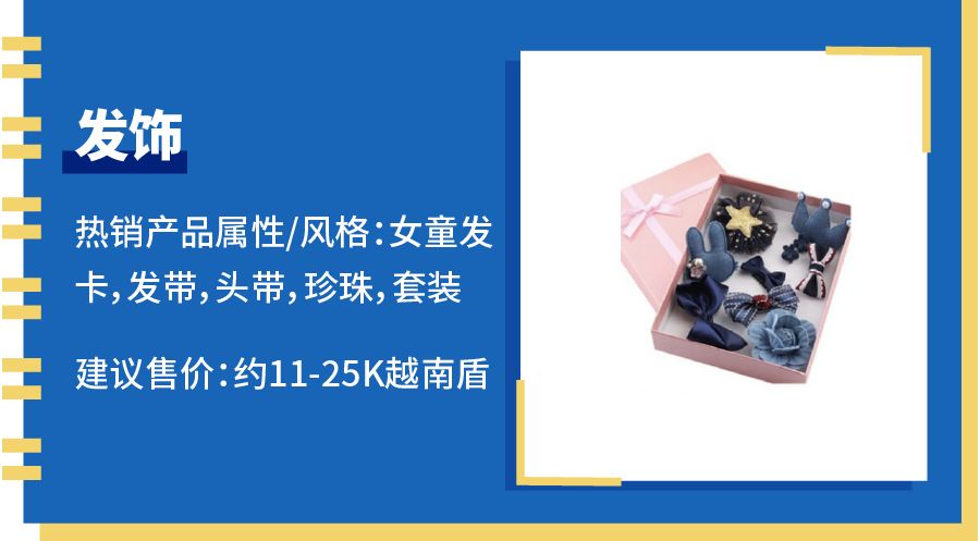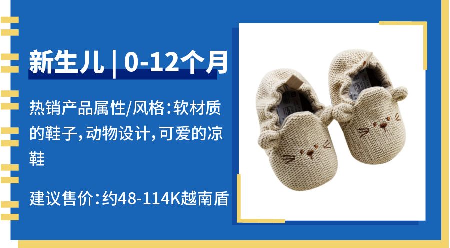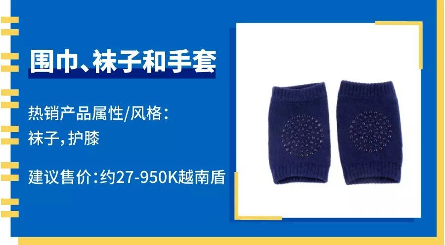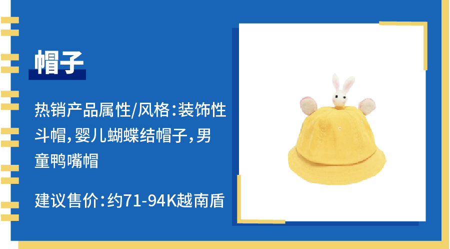 越南市场的母婴用品类目中,儿童服饰和玩具是重点子类目。服饰配饰方面,可爱女童饰品受欢迎,例如帽子和袜子。玩具方面,卖家在上新偏教育性的玩具时,要注重描述玩具对于儿童的安全性,最好搭配视频介绍。