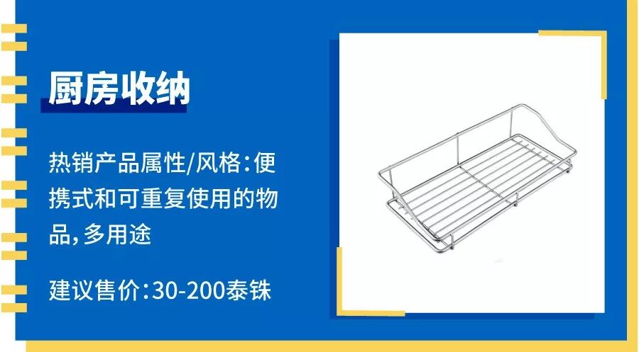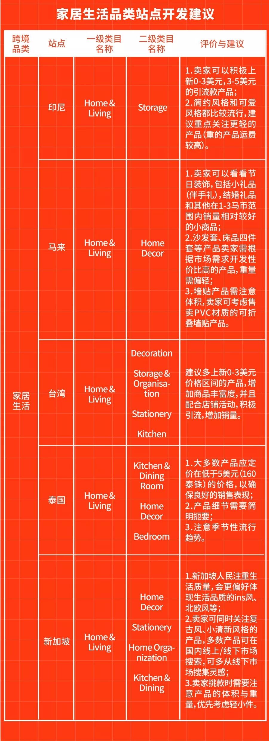 泰国的家居品类(Home & Living)下,厨房及餐厅、家居装饰及卧室用品是比较热门的类目,卖家进行选品时需要注意季节性。