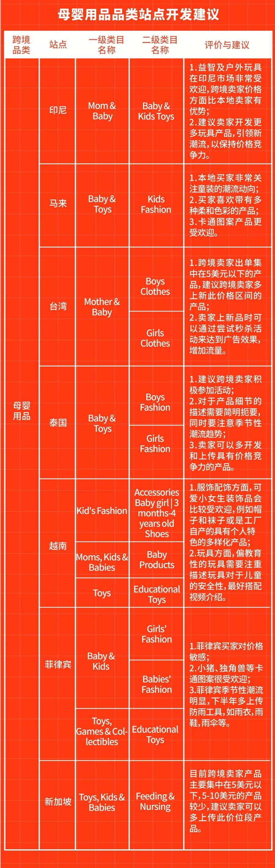看完是不是觉得妈妈们带孩子实在太不容易了~本期小编特别精心挑选了优质的母婴商品,卖家们快快上新,让妈妈们舒心选购,给东南亚和台湾的宝贝们一个美好的童年!妈妈们给Baby买东西时,必不可少为家添置新商品,ins风、自然环保、北欧风都是大势所趋,本篇详解东南亚和台湾家居品类热卖品选品,千万不要错过!