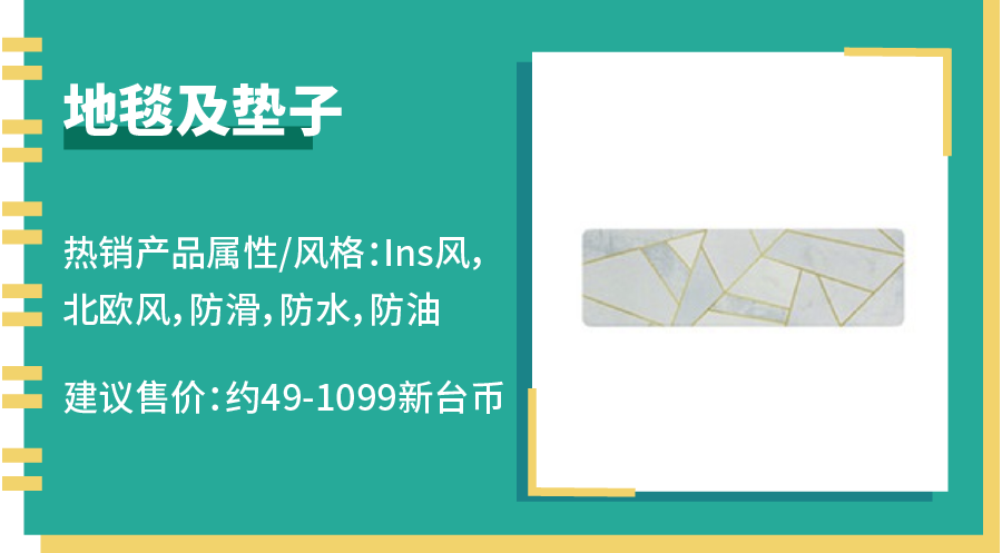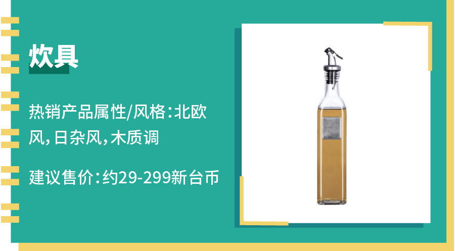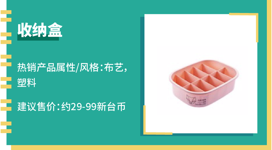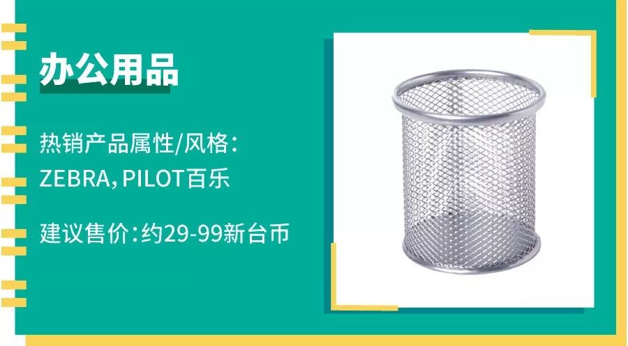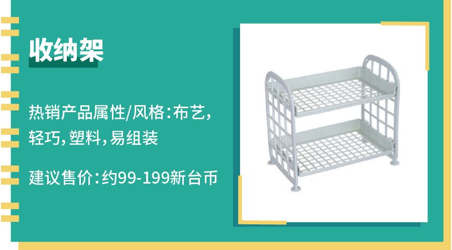 家居生活(Home & Living )在台湾市场是十分重要的类目,装饰、收纳、文具、厨房类目下的产品都十分畅销,卖家可以多关注台湾的流行趋势并开发这些二级类目下的产品。