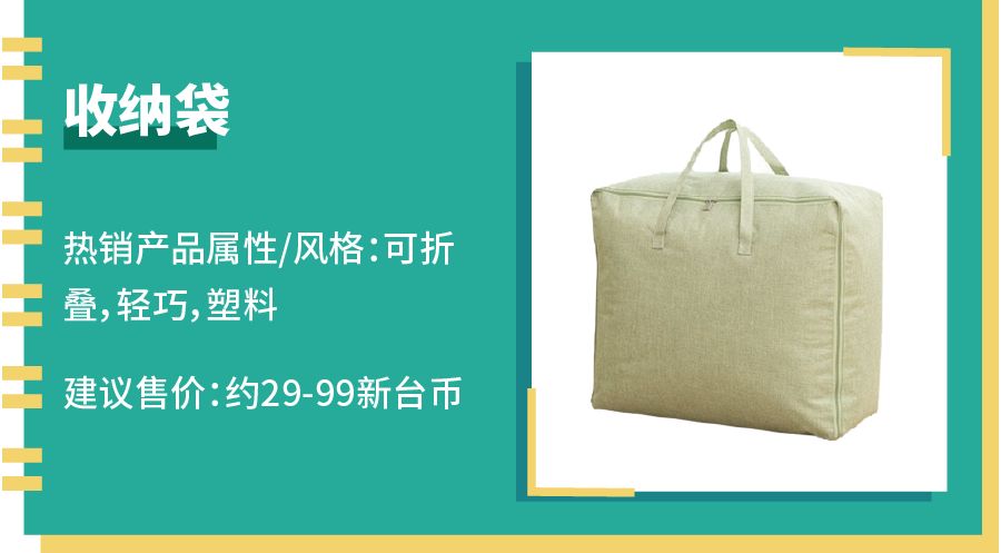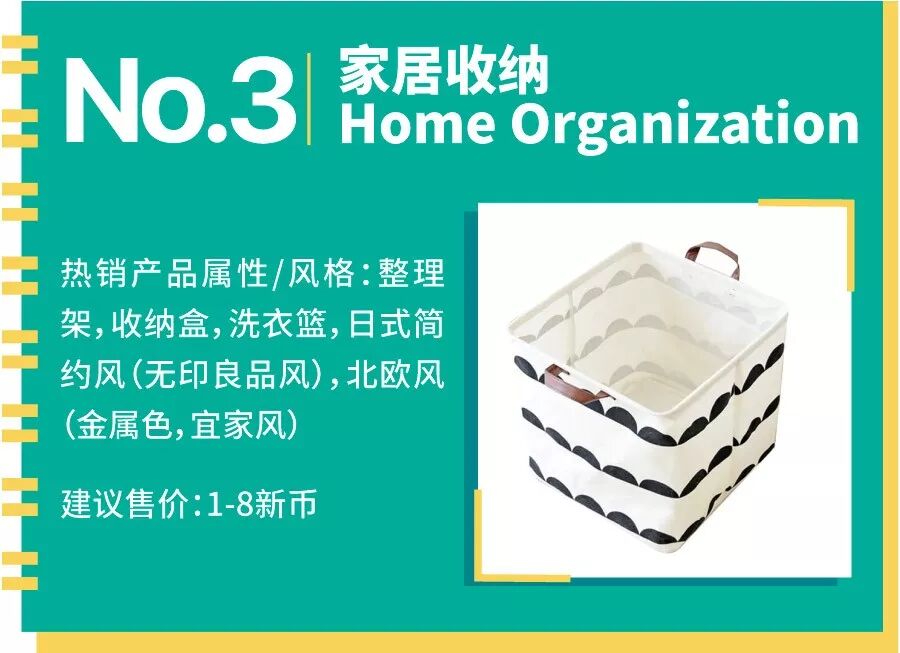 在家居收纳方面,卖家挑款时需要注意产品的体积与重量,优先考虑轻小件,产品价格最好控制在1-8新币左右。