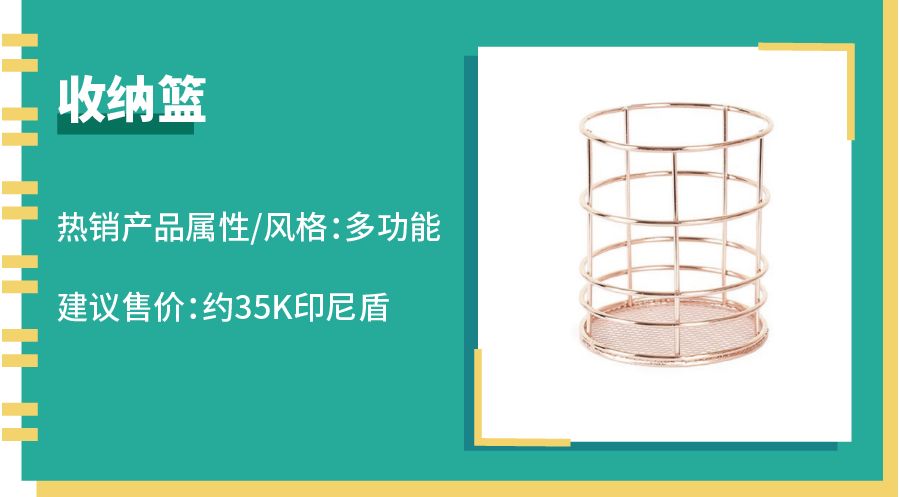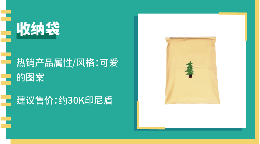 印尼市场的家居生活品类(Home & Living)中,收纳是重点二级类目,各种类型的收纳用具都受到买家喜爱,带有可爱角色的储物盒和大号拉链袋目前很受欢迎。
