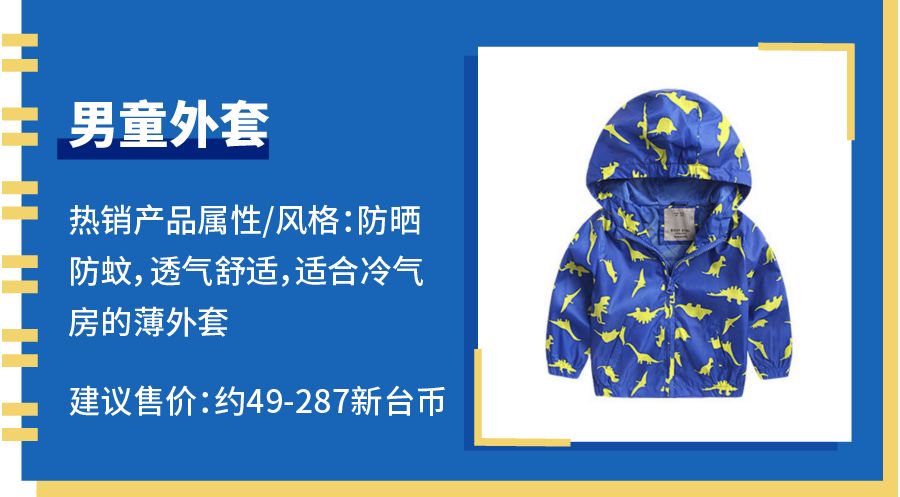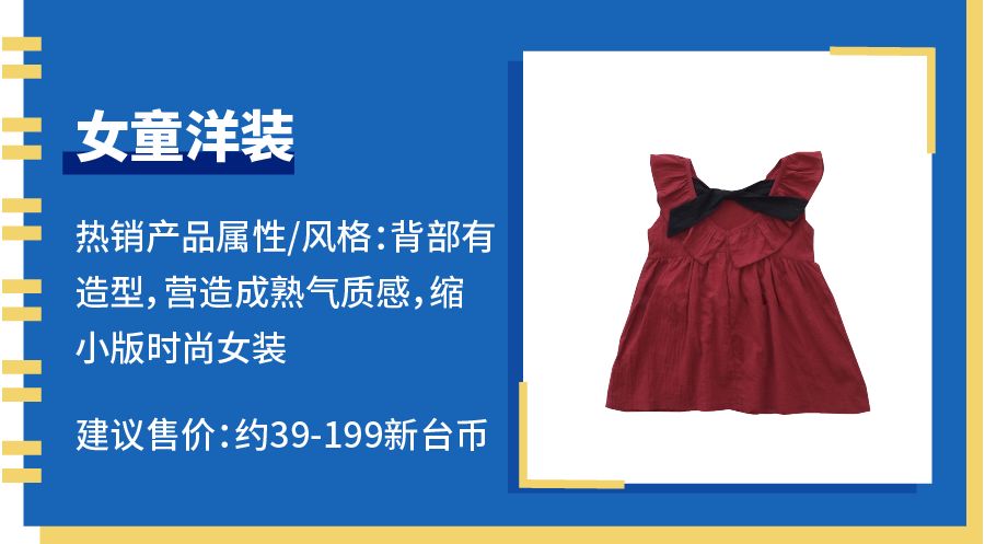 男童及女童服饰是台湾母婴品类下的热门子类目,卖家在进行选品时可以在一些当地论坛或社交网站上了解流行趋势。