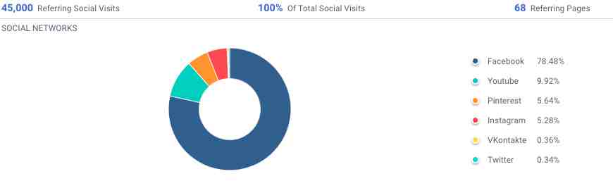社交媒体方面,Facebook最大流量来源,其次是视频图片社媒,pinterest这类女性用户为主的图片社媒。VKontakte俄语系的社媒,可见该品牌在东欧市场的扩张。