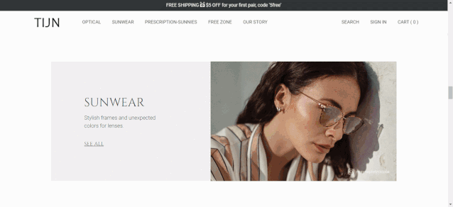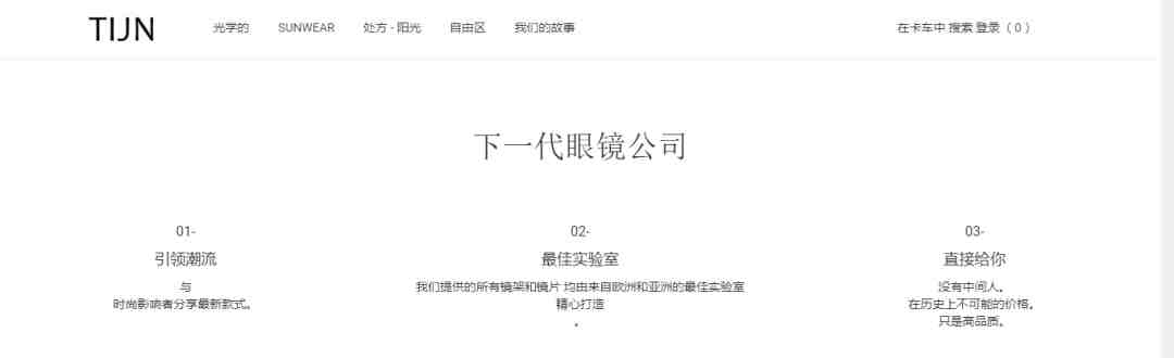 2017年,TIJN品牌独立站取消了以性别作为产品区类别作为区分点,开始推出眼镜和太阳眼镜。