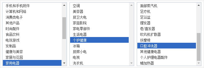 目前该类目下个护健康、生活电器、美容仪和厨房电器为重点发展的二级类,其中扫地机器人、口腔冲洗器和电动牙刷市场需求巨大,有资源和商品的卖家尽快入场。