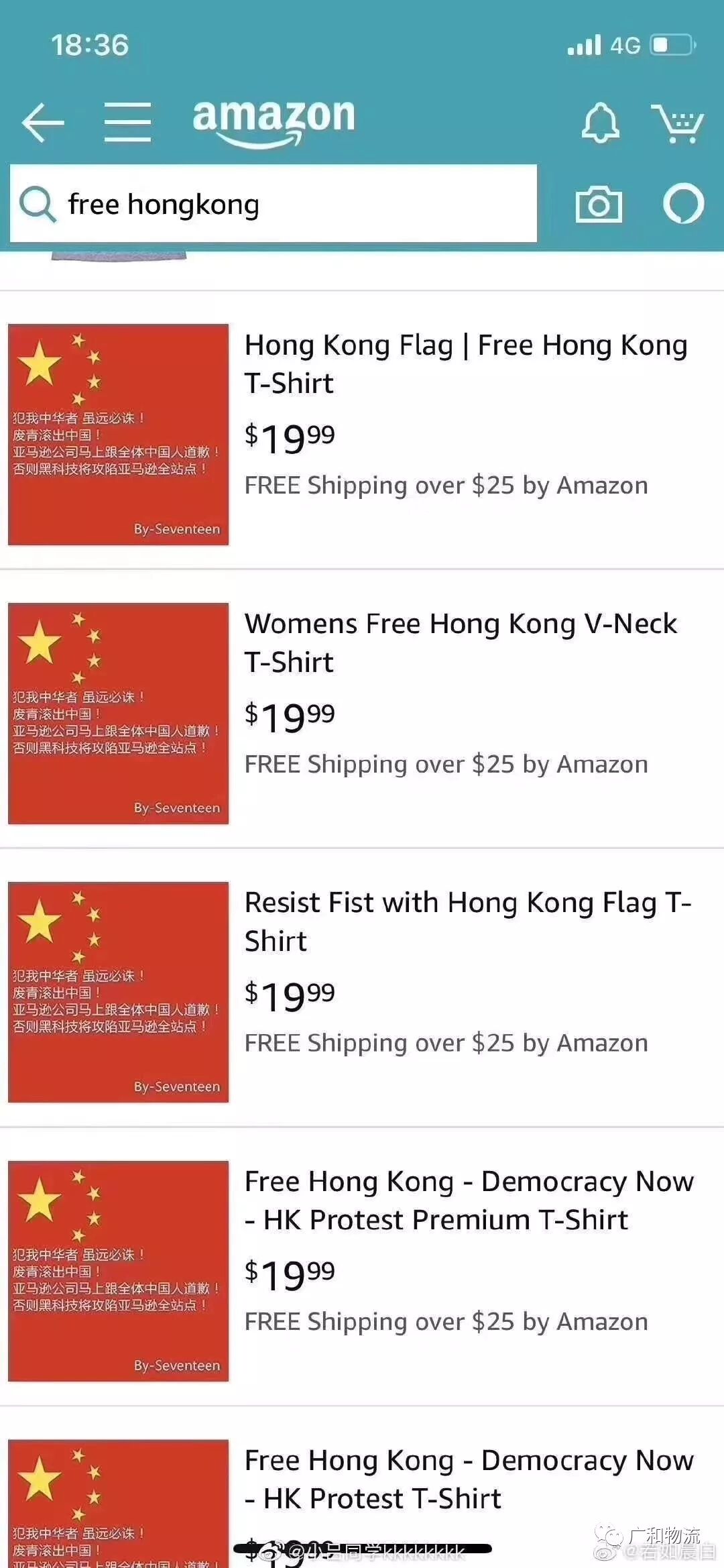 亚马逊自营账号权限一直很大,背后是持有VC账号的卖家仗着有姐夫撑腰为非作歹,这类账号在买家端显示“sold by Amazon”,恶意篡改其他卖家的Listing。如今,港独分子居然利用亚马逊平台公然销售“港独T恤”,这无疑是对中国的挑战!