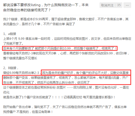 然而,对于一些新卖家或者佛系运营的卖家似乎并不怎么了解,现在还是经常会看到有人问修改listing会不会影响销售,比如下面这位卖家。