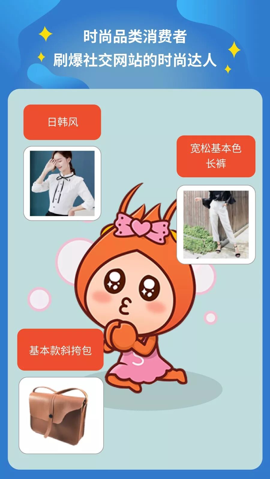 购物偏爱:对品牌没有特别的要求,更看重时尚款式和实惠价格。