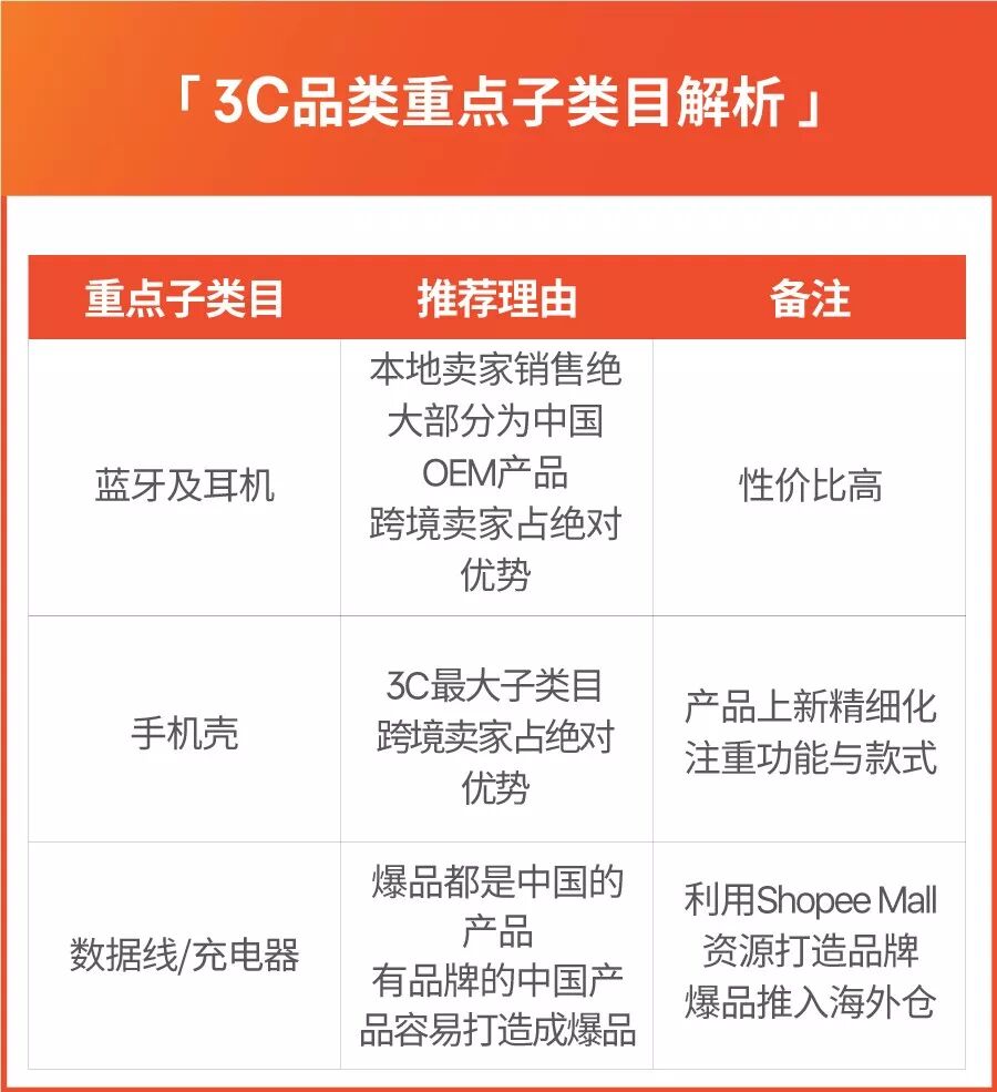 3C品类一直是跨境卖家的主力类目,具有强大的价格与品牌优势。卖家们可继续发力,为9.9大促储备精力,做好精细化运营,利用Shopee Mall资源打造品牌,爆品可提前推入海外仓。