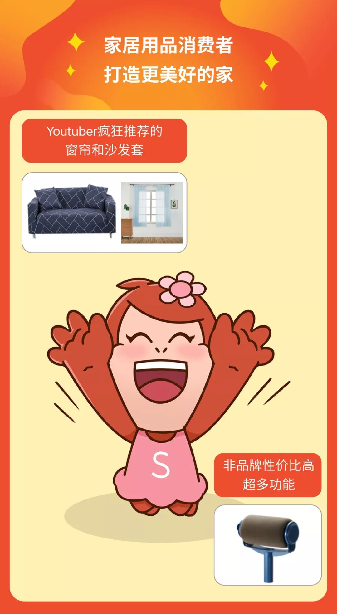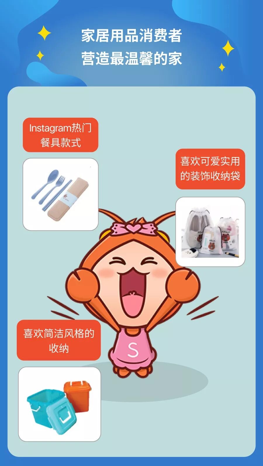 购物偏爱:偏爱性价比高的家居装饰,年轻女性偏爱可爱型商品,成熟女性偏爱实用型商品。(9.9大促提前上新多种商品,才能满足各类买家需求噢!)
