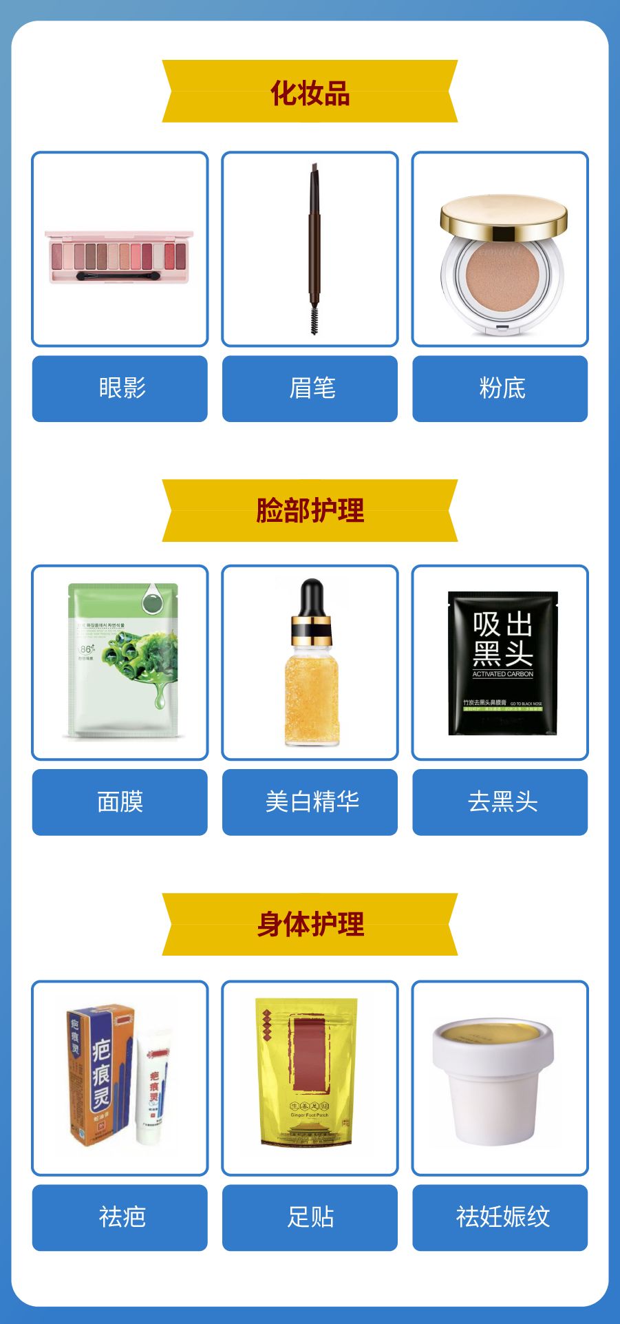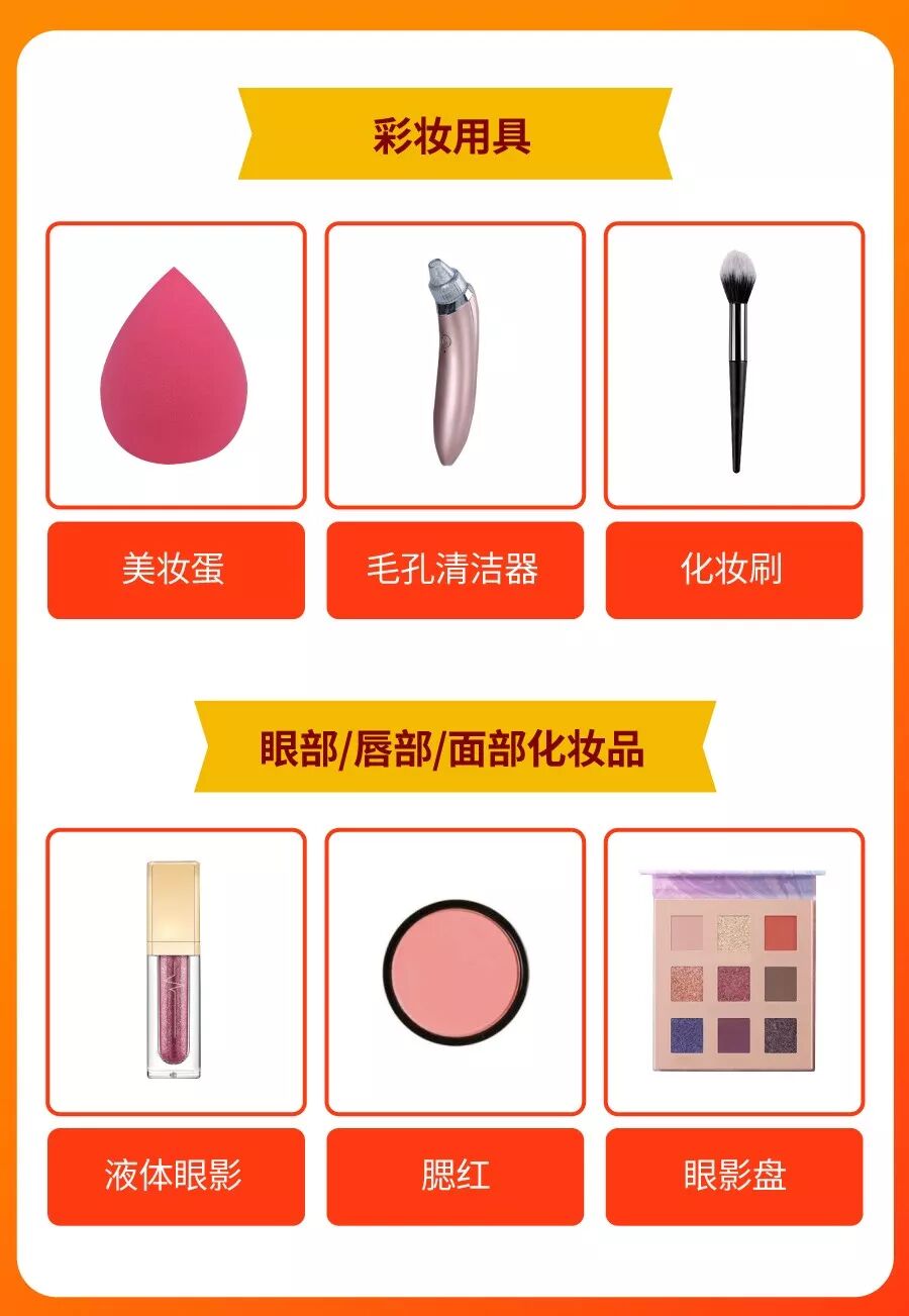购物偏爱:美白、除皱、祛痘功能的护肤品,以及眼妆、眉笔、唇彩等美妆品。