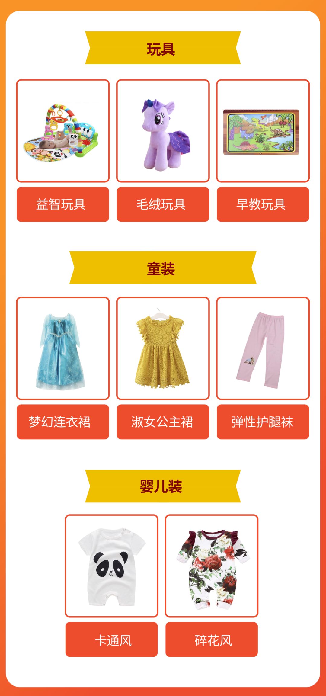 儿童配饰类头饰、儿童手表、包包等市场需求大,发展潜力大。儿童玩具类益智玩具出单快。