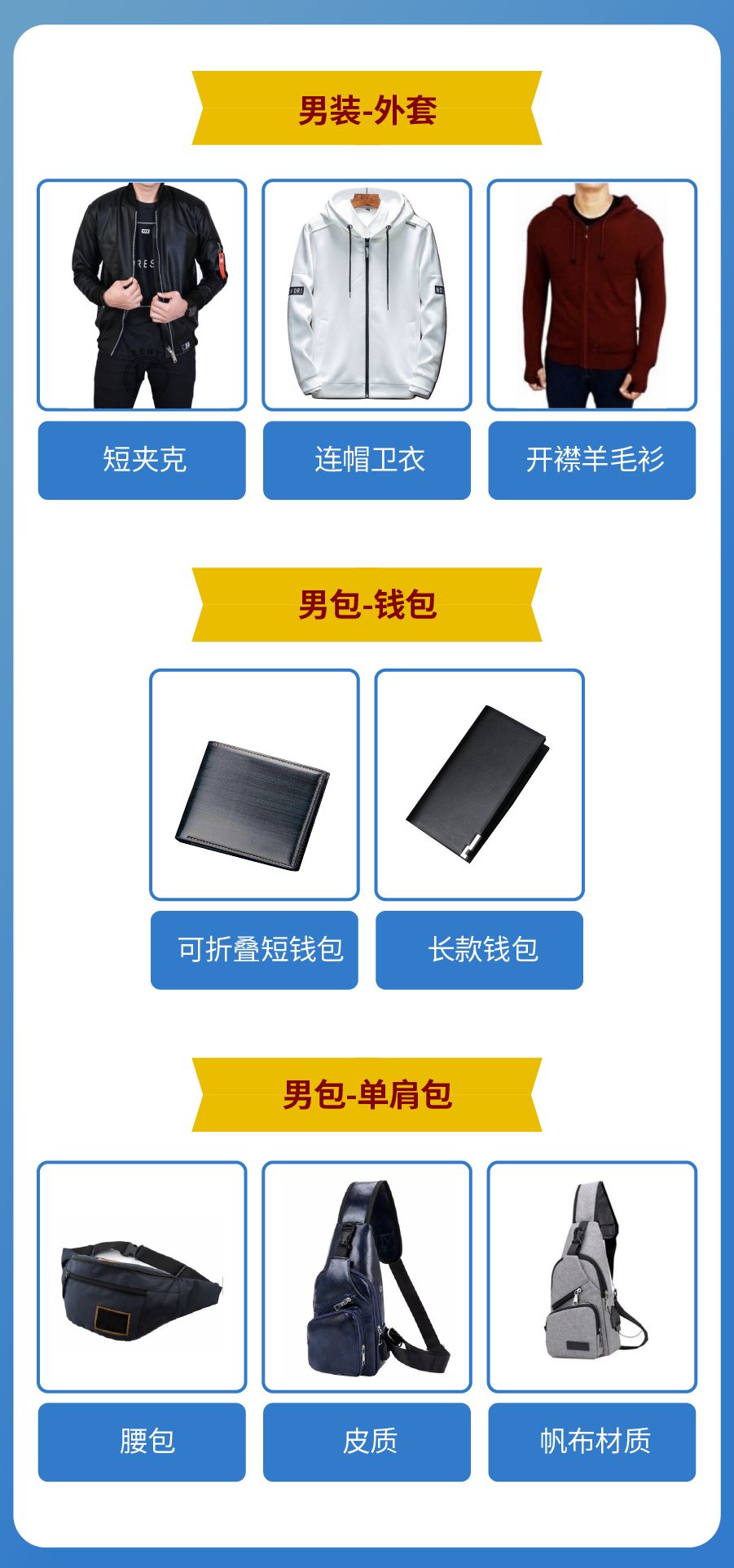 购物群体:男装品类购买者主要为17岁以上的男性。