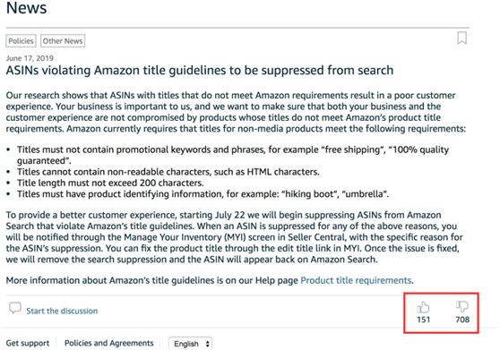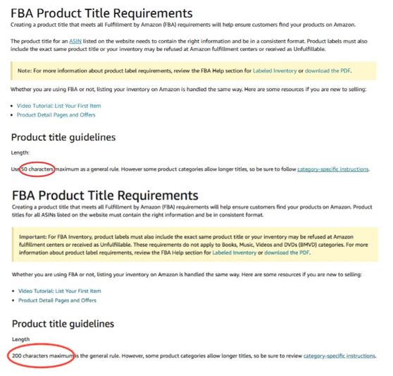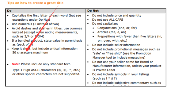 上个月,美国站和加拿大站率先发出了产品标题政策的更变通知,欧洲站和印度站也从7月22日起开始同步执行该政策;接下去,该政策还会推进到日本等站点,针对所有非媒体类(Media)的产品,无论您是使用FBM自发货还是通过亚马逊FBA配送,都必须遵循。 产品标题设置有了新的规范与要求,对于不符合新政策要求的,或者说违反亚马逊标题政策的产品,在亚马逊搜索结果中将会被取消展示。 (图源亚马逊官方通知截图) 大多数卖家就产品标题政策变更纷纷表示不赞同,特别是亚马逊把原本的200个字符改成50个字符,字符越来越少,标题关键词设置就越来越难了。还有就是产品的标签与产品标题必须一致,否则会被拒收或不予配送。 不过没多久,亚马逊又把字符限制改回了200个字符;产品标签与产品标题不一致会被拒收或不予配送的内容也删除了。 (图源亚马逊产品标题要求帮助页面截图) 接下来,船长将对这次亚马逊产品标题的新要求和大家做个分享交流,仅供参考和学习。卖家们请及时做好产品标题自查,并在后续设置时多加留意。 产品标题设置新要求 1 标题长度 分类指南的查找步骤如下: ①打开帮助页面库存文件模板,找到“Style Guide”这一列; ②按照分类去下载分类指南PDF,查看Product Title。 这里船长给大家列举几个: 婴儿类别= 50个字符 分类指南 – https://s3.amazonaws.com/merchant-facing/StyleGuides/BabyStyleGuide.pdf 服装及配饰= 80字符 分类指南 – https://images-na.ssl-images-amazon.com/images/G/01/SellerCentral/ClothingStyleGuide.pdf 消费电子产品= 150个字符 分类指南 – https://images-na.ssl-images-amazon.com/images/G/01/rainier/help/CEStyleGuide.pdf 艺术品=200个字符 分类指南 – https://images-na.ssl-images-amazon.com/images/G/01/rainier/help/FineArtStyleGuide.pdf 照明产品= 50个字符 分类指南 – https://images-na.ssl-images-amazon.com/images/G/01/rainier/help/LightingStyleGuide.pdf 工具和家居装修= 50个字符 分类指南 – https://images-na.ssl-images-amazon.com/images/G/01/rainier/help/ToolsAndHomeImprovement_StyleGuide.pdf 其他更多分类指南,也可以直接访问欧洲站点的各品类分类指南下载页面进行相关操作。 地址: https://sellercentral.amazon.co.uk/gp/help/1641?language=zh_CN&ref=ag_1641_cont_200332540 特别提醒:船长注意到虽然这些分类产品有些字符限制是50个字符,但亚马逊给出的例子是80多个字符。因此,船长建议大家以文字内容为准,不参考示例标题的字符数量。 例如,工具和家居装修要求 50个字符: 亚马逊给出的例子如下: 根据亚马逊的要求,标题最好简洁明了,建议控制在80字符或更少。如果您的产品标题超过推荐的字符要求,但仍然在200字符内,只要不出现那些不允许的数字和符号,则不会影响您的产品在搜索结果的展示。 2 标题大写 3 标题中的数字与符号 4 标题中包含的商品信息 5 使用变体关系的产品标题 6 产品标题中的禁用词举例 与此同时,对于亚马逊产品标题关键词筛选和使用,卖家也同样有很多问题需要注意的,比如,选用精准关键词,切勿堆砌关键词等。