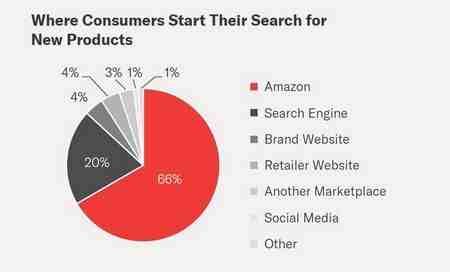 当消费者有具体的购买意图时,他们会选择那个网站作为搜索的首选呢?答案还是亚马逊,调查显示,有超过66%的顾客在产生购买需求时,会首先选择亚马逊进行搜索,选择google等搜索引擎的顾客只占到了20%,选择品牌官网的则只占到了4%。所以大家还是应该做好自己产品的SEO,毕竟将自己的listing推到自然搜索结果的首行,才是运营的最高境界。