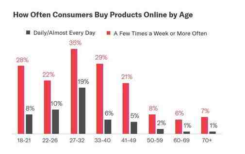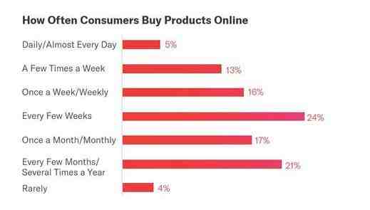 报告显示,有超过一半的消费者会选择每周或每几周在在网上进行购物,这是说明电子商务依旧在保持高速的发展,越来越多的消费者在趋向于选择网上购物这种方便快捷的方式,电商的热潮依然在高歌猛进。