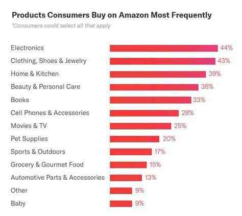 在亚马逊的诸多类目中,究竟哪些类目是消费者最为青睐的呢?排名第一的当之无愧是电子产品,其实是服装珠宝类目,家居厨房类目紧随其后。但是这并不能作为我们选品的依据之一,因为这只是市场容量的体现,其他的选品因素如竞争程度、饱和程度等在这些数据里均不能得到体现。
