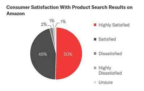 消费者是否对亚马逊的搜索结果表示满意?调查结果显示,有50%的顾客选择非常满意,有45%的顾客选择满意,二者相加超过95%,这说明广大美国消费者对亚马逊的产品满意率极高,这也和首富jeff将亚马逊带上高端精品路线是分不开的。