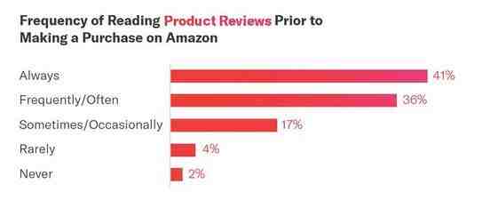 review在转化率的高低上,是一项极为重要的因素,调查结果显示,有超过77%的消费者在购物之前会经常浏览产品的review,那些review的数量和质量都不高的listing,是无论如何也得不到消费者青睐的,因为大家都希望能花费最小的代价和最快的时间去买到最心爱的商品。