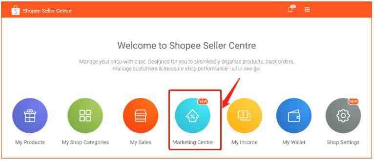 Shopee各站点卖家中心的我的行销活动(Marketing Center)会定期推出活动报名通知,请卖家积极报名参与。