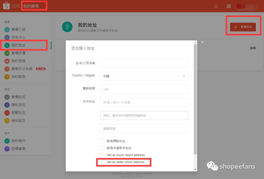 3. 台湾卖家除设置 Seller address之外,还需设置Buyer address,该地址请统一填写邑鑫退货地址,详细的地址信息如下示例: