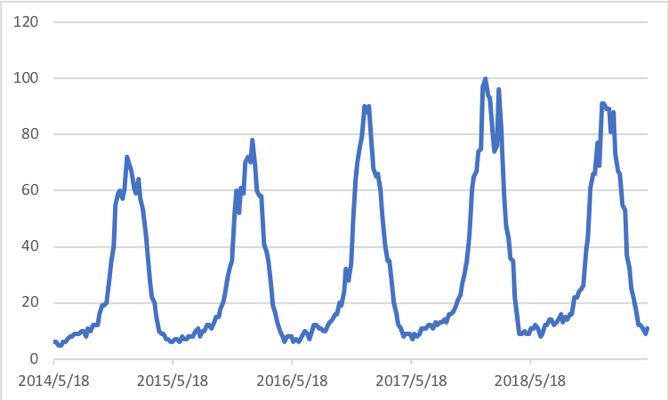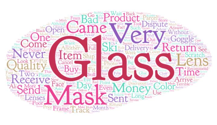 四 常用物流分布 物流选择种类较多 再看物流方面,该样品市场的卖家选择的物流种类较多。其中,最受卖家欢迎的物流方式是无忧物流-标准,占比为40.73% 。其次是中国邮政挂号小包,占比为26.46%。另外,e邮宝、无忧物流-简易、卖家自定义-俄罗斯也有不少卖家选择。参照物流分布制定合适方案可以降低卖家的部分成本。 五 销售趋势及舆情走向 平均星级数较稳定 从上面的数据可以看出,近5个月来该样品市场的月新增评论数的情况。在2019年1月的月新增评论数最高,为8066条。除去2019年4月,其余三月的销量均在6000上下。 再看平均星级数,该样品市场的平均星级数稳定在4.83左右,波动较小。其中,2019年1月的平均星级数最高,为4.84。 六 差评评论分析 消费者看重质量 上图为样本的差评词频图。根据词频图中出现频率较高的“glass”、“mask”、“very”等词,再联系产品的商品评论,可以发现买家普遍关注产品质量,因为镜片薄、易起雾、易刮花、不防紫外线等问题而给予差评。作为该行业速卖通卖家来说,在选品时不仅要注重产品做工,更要关注产品的功能与设计,选择优质产品,减少差评。 七 搜索热度 与行业热销期吻合 在谷歌趋势中输入ski goggles 。从图中可以看出该关键词的搜索热度变化十分具有规律性,因为产品的特殊性,因此搜索热度与行业热销期吻合,在每年1月份达到搜索高峰。另外,在每年大约11月,搜索热度开始迅速飙升,产品需求急剧上升。卖家要把握好这一规律,在迎来销售旺季前要及时备好货,应接高需求。