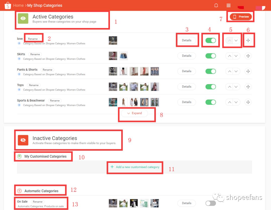 1 已启用的分类,买家可以在店铺看到这些分类。