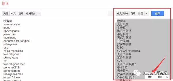 首先我们复制A列到翻译工具里面去,如下面标记所示。
