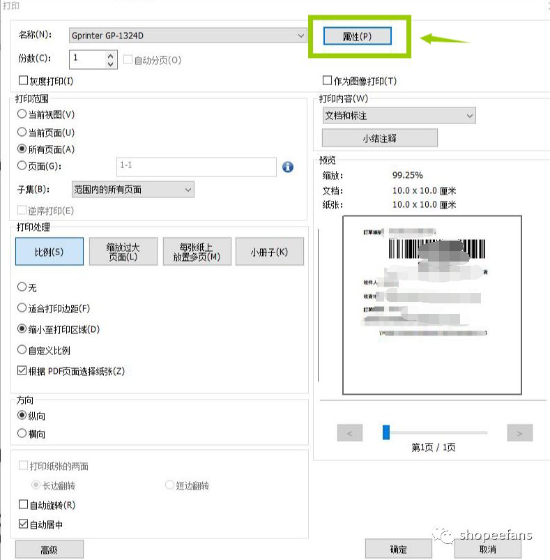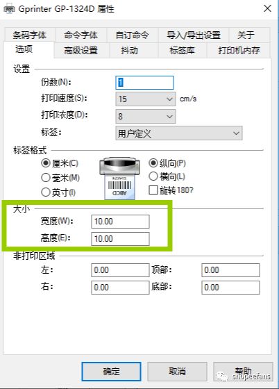 1、设置打印机10*10的面单