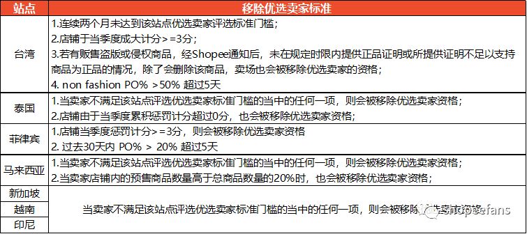 各站点评选优选卖家时,除了满足表格当中相应评分项目的标准之外,还需满足以下附加条件