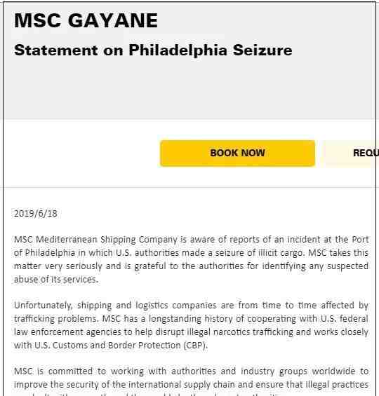 “地中海航运公司了解到有关美国当局扣押非法货物的费城港事件的报道。MSC非常重视此事,并感谢当局查明任何涉嫌滥用其服务的行为,“声明中写道。“不幸的是,航运和物流公司不时受到贩运问题的影响。MSC长期以来一直与美国联邦执法机构合作,帮助打击非法毒品贩运,并与美国海关和边境保护局(CBP)密切合作。“