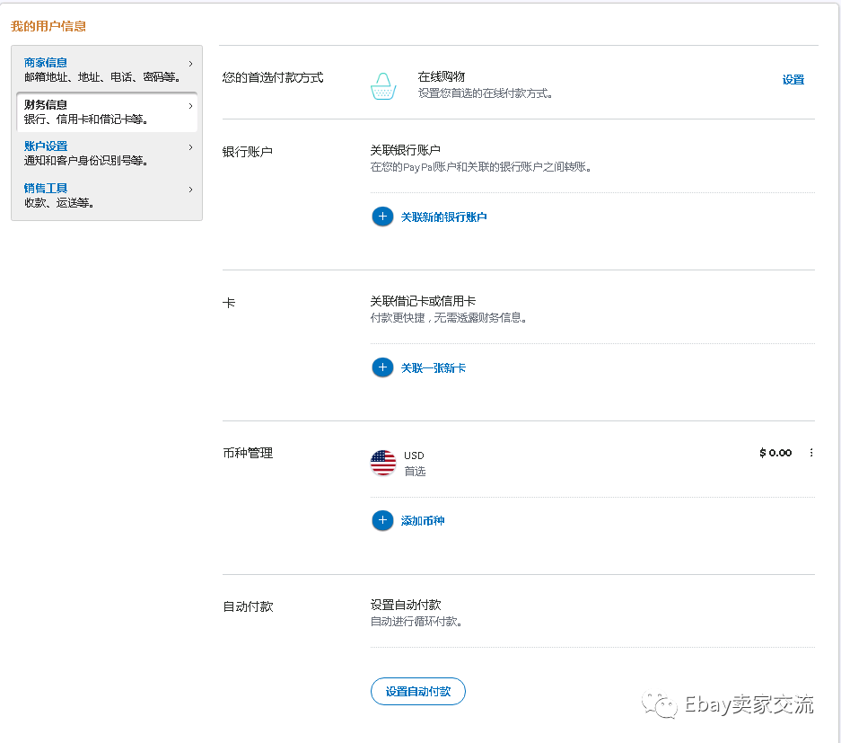 验证完邮箱后,选择【账户设置】-【关联您的银行账户】,可见如下页面