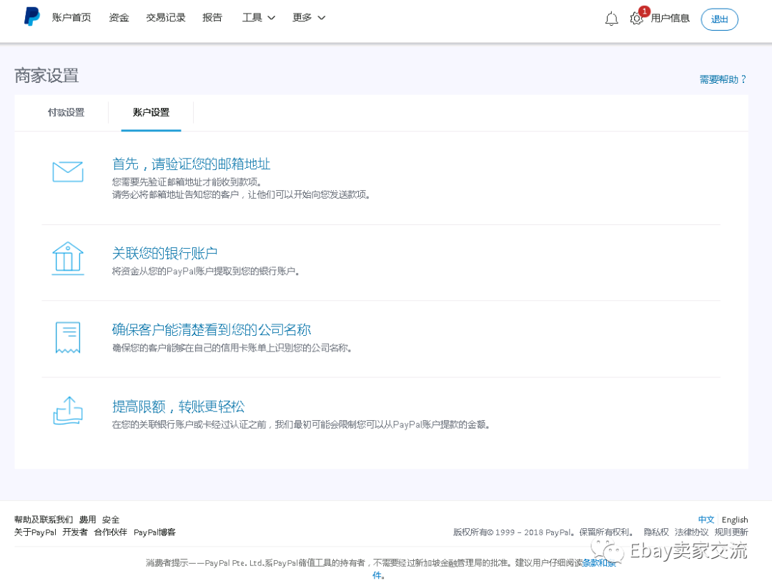 建议您使用与注册eBay账号时相同的电子邮件地址注册PayPal账户。