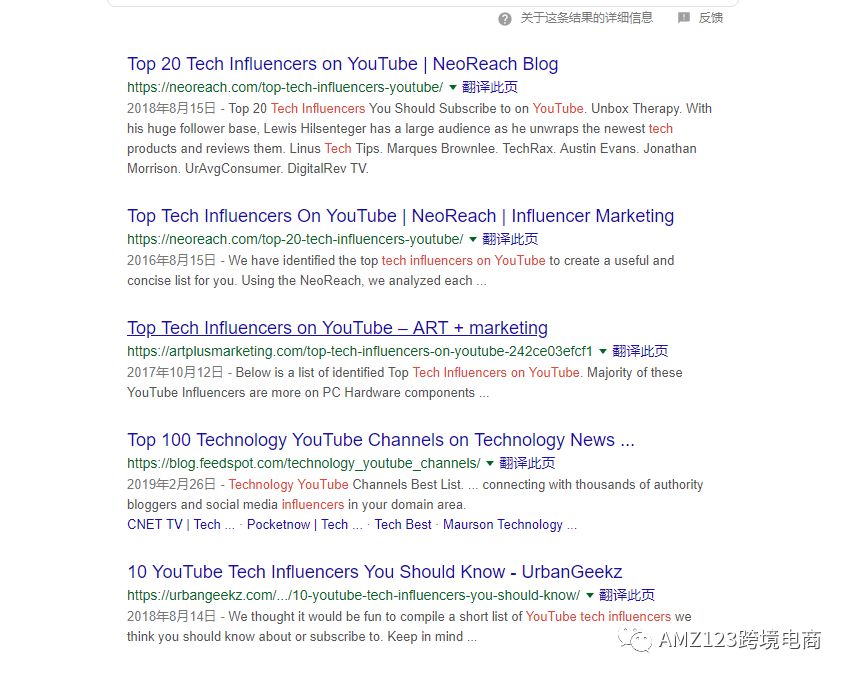 比如你销售可穿戴设备或其他电子设备,你就可以搜索“tech influencers on YouTube”: