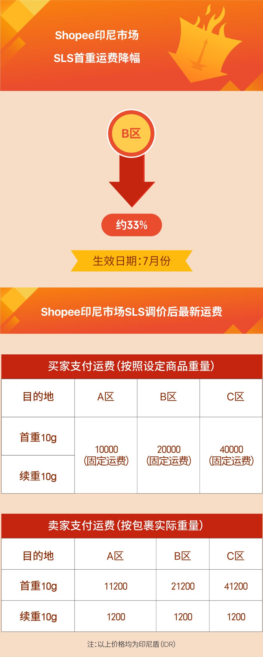 在东南亚最大电商市场印尼,Shopee跨境斋月大促爆单10倍后乘胜追击,将SLS服务体验拉升至新高度!7月份开始,SLS在印尼B区的首重运费降幅将高达33%,有望在2019年旺季高效促单!