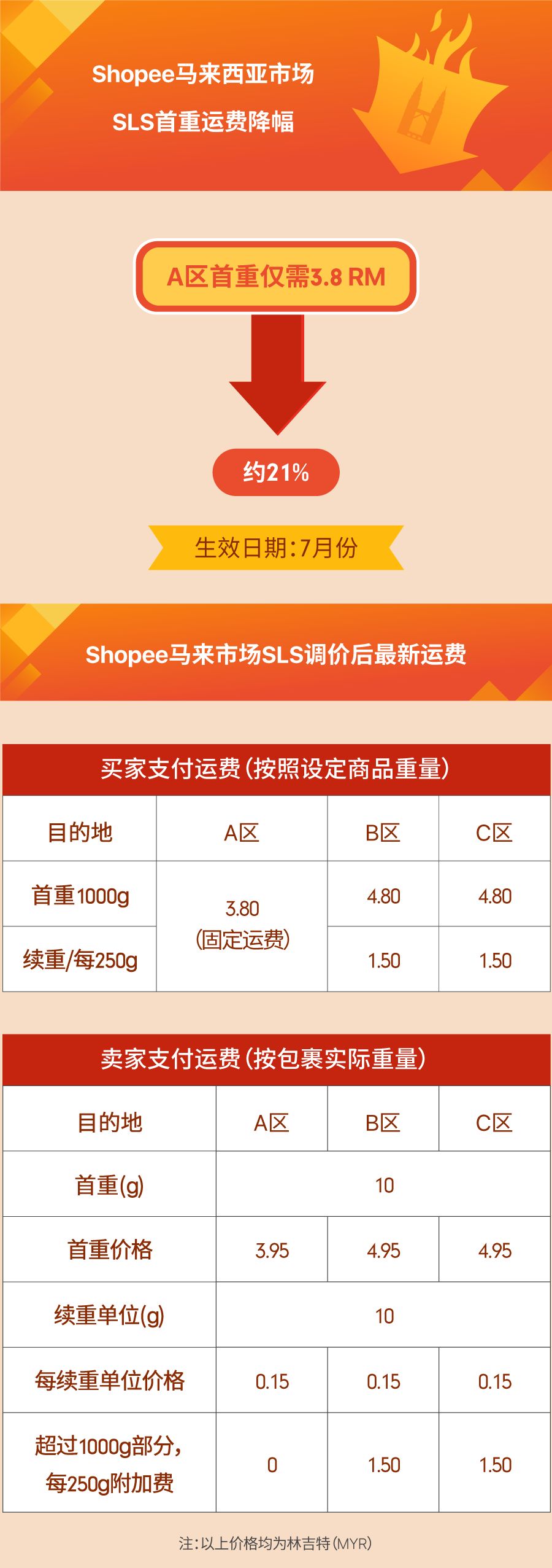 在Shopee马来西亚A区,即订单量最多的西马地区,SLS运费实现连续下调,首重价格在4月份从4.8马币下调至4.0马币,预计7月份将继续下调至3.8马币!广大跨境卖家敬请期待!