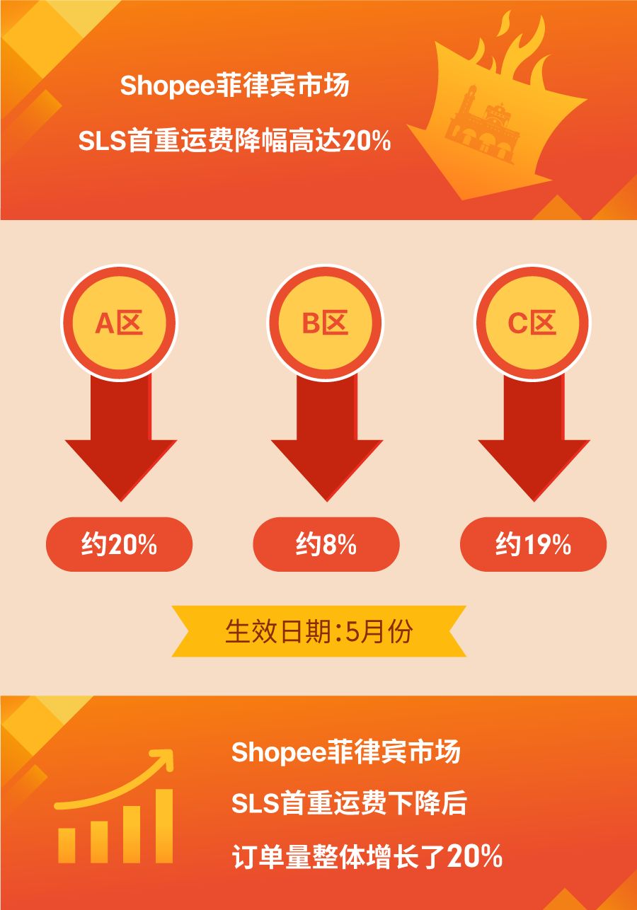 Shopee菲律宾市场A区、B区和C区包裹配送成本也已全面下调,首重运费下降了8%至20%!Shopee菲律宾跨境整体单量实现了20%增长!