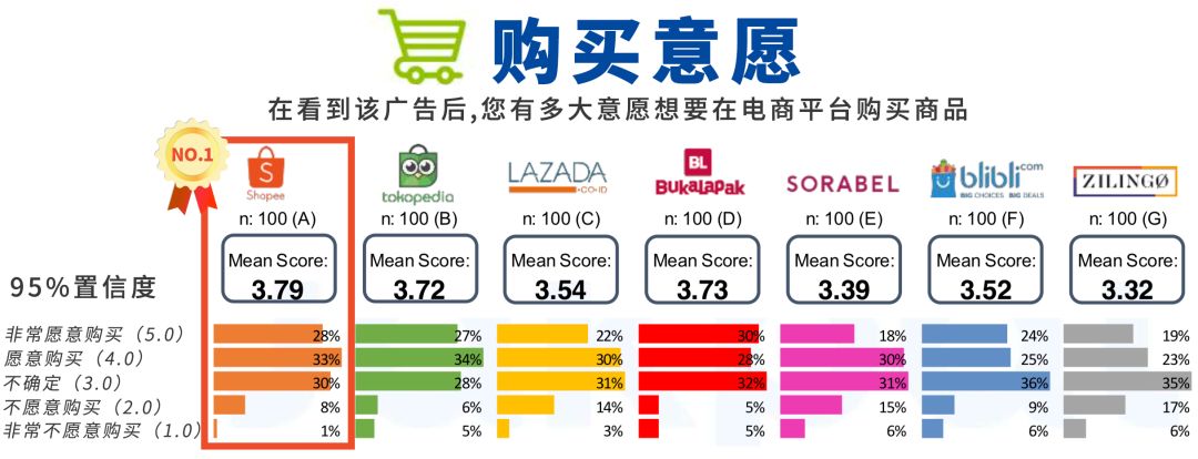 在观看广告后消费者购买意愿方面,Shopee斋月版电视广告得分最高,达3.79,超越Bukalapak、Tokopedia和Lazada(分别得分3.73分、3.72分、3.54分)。