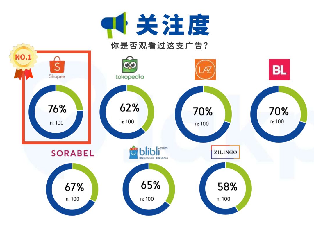 2019年斋月期间,印尼各大电商均投放了电视广告(TVC),印尼市场研究平台JAKPAT对此做了相关调查。报告显示,58%以上的受访者表示都看过这些电视广告,其中Shopee斋月版电视广告最受关注,在调查中76%的受访者都观看过其广告。该广告在消费者购买意愿和广告可信度两方面也表现最为优异。