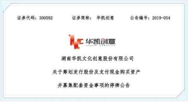 此次的并购方是华凯创意,6月3号发布停牌公告