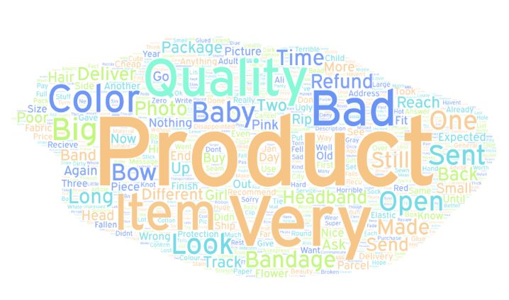 上图为样本的差评词频图。根据词频图中出现频率较高的“product”、“quality”、“bad”等词,再联系产品的商品评论,可以分析出买家因为物流运送问题和产品质量问题给予差评。作为该产品的速卖通卖家来说,在选品方面要更注重产品质量,减少差评。