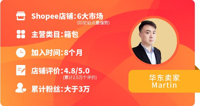 华东箱包卖家Martin去年8月入驻Shopee,利用旺季4场大促“节节高升”,从日单100快速爬升至5000单。那么Martin的销售佳绩从何而来?让我们一起解锁他的运营三板斧:产品差异化、运营精细化、和服务优质化。