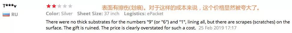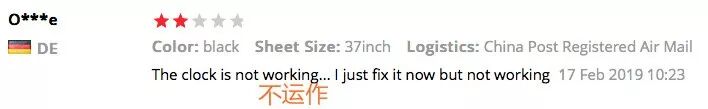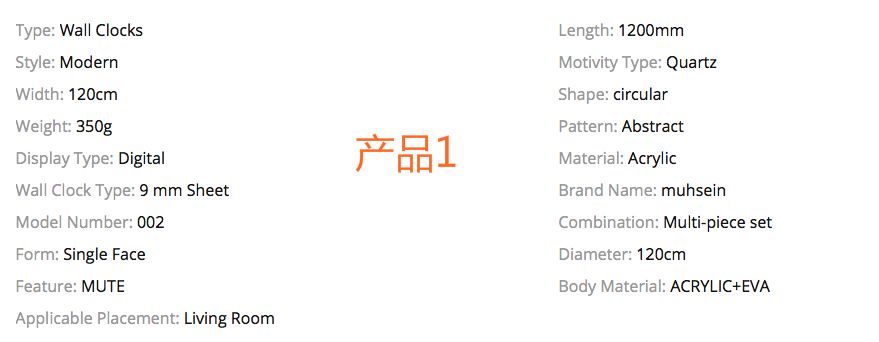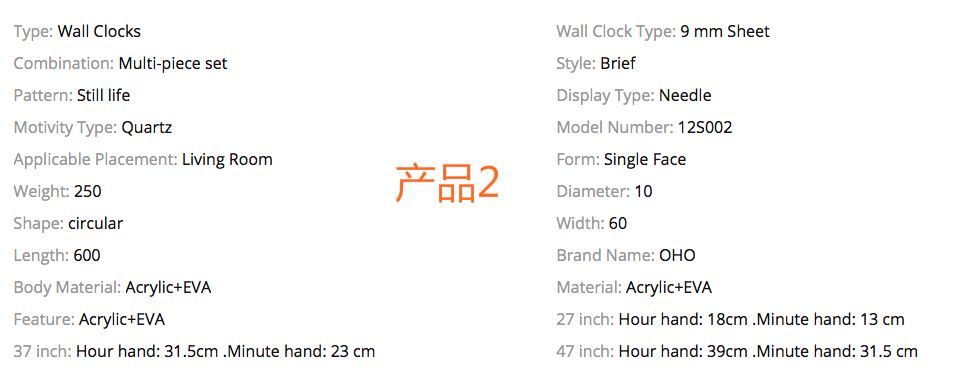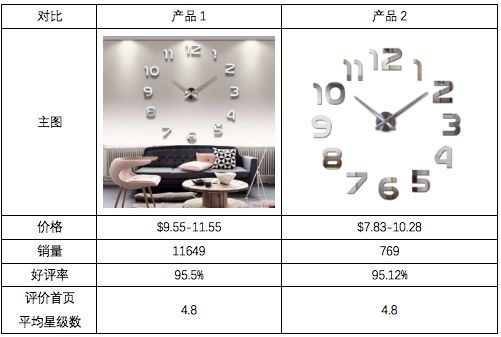 2.产品标题 通过翻译,产品1的标题为“2019年免运费新钟表挂钟3d Diy压克力镜面贴纸家居装饰客厅石英针”,产品2的标题为“顶级时尚3d挂钟石英表现代diy钟表客厅大型装饰挂钟贴纸”。 经过比较可以看出,两个产品的关键词稍有差别。首先,卖家都有将搜素人气排名高的关键词运用到标题中,如:3d、diy、decoration、living room。再对比两标题不同的关键词:产品1为2019、free shopping,突出产品新鲜性和免邮特点;产品2为reloj de pared、murale,瞄准西班牙等市场,运用西班牙语引流。两款产品的标题各有特色各有侧重,卖家可根据实际情况增加不同的关键词。 3.产品种类 我们可以看到,产品1和产品2对于颜色选择的呈现方式不同,产品1配合使用场景,在呈现不同颜色选择的同时展现出实际效果,产品2则只有独立的产品照片。但在尺寸大小选择方面,产品2提供更全面的选择,比产品1多出了27 inch的选项。 4.产品规格 就商品详情规格来说,虽然产品2所填产品规格信息更多,但是犯了一个基本错误:没有填数量单位。另外,在feature一栏,产品1填写的是MUTE(静音),而产品2重复填写了Acrylic+EVA(产品材质)。可以看出,商品详情规格的填写十分重要,如何填写也需要技巧。消费者虽关注产品本身,但比起产品用的是什么生产材料,买家更想直观了解产品具有什么特点。 5.产品主副图 产品1和产品2的主副图简洁明了地展示了产品的外观和实际效果图。如果再加上产品尺寸大小和产品尺寸图会更加全面细致,让消费者迅速掌握产品信息。另外,卖家可以考虑在产品主图位置放视频来吸引消费者,通过视频更全面的展示产品的信息。 6.产品定价 从图片中可以看出,产品1的价格比产品2高,但是产品1设置的划线价格比产品2高出许多,因此对于消费者来说,产品1的折扣更大,吸引力更大。另外,产品2除了速卖通新用户优惠券之外,设有店铺支付满减的折扣优惠活动($18-$1、$35-$2、$75-$5),而产品1没有。卖家在设置价格的时候要在产品现价、划线价格以及优惠活动之间做好衡量。 7.产品详情页 a ) 产品1和产品2的详情页图片都制作精美,且在主副图的基础上增加了更多的产品尺寸说明图、细节说明图、使用说明图。但产品2图片风格不够协调,需要做好文字分类说明,避免带给消费者混乱感。另外,产品1展示出了买家秀,让消费者更直观感受产品真实效果。 b ) 产品1有关于订单支付、产品运输、退货退款、订单保障及评价等信息的精美展示图,能够使买家清楚了解相关流程,一定程度提高买家的满意度。产品2的相关信息则较为简陋。 8.产品评价 产品1共有评论5788条,其中差评有173条,差评率为3%。通过浏览评论发现差评主要有四方面原因: a) 产品尺寸与描述不符。 b) 产品不能工作或不会安装。 c) 产品材料不好。 d) 包装不完善导致买家收到产品时货物损坏。 针对上述差评问题,做出以下改善建议: a) 卖家在描述产品尺寸时要标记好数量单位,避免产生误会。 b) 加强选品,挑选材料坚实耐用的产品。 c) 拍摄产品安装视频,让卖家更轻松安装产品。 d) 由于跨国物流,风险及不确定因素太多,所以卖家在产品发货前检查产品功能正常后,对产品进行全面精细的包装,降低因包装不完善导致产品损坏的可能性。 产品2的评论数较少只有453条,其中差评有12条,差评率为2.65%。产品2差评原因跟产品1的产品基本一致,基本上皆为产品质量不好。 四 微分析总结 速卖通的挂钟行业在家居类目中是一个热销行业。由于挂钟是一个生活必需品,销量受节日折扣活动等影响小,因此支付订单数占比比较稳定。 建议挂钟行业的各位卖家注意以下几点: 1、 积极关注该竞品关键词的搜索热度变化,把握规律。瞄准搜索热度高的国家市场,做好差异化营销。 2、 产品价格直接影响消费者的购买欲望,卖家要运用好产品的划线价格,通过价格折扣吸引消费者。 2、注重产品详情页的细节问题:注意图片安放的条理性,产品尺寸大小的描述要带数量单位等。另外,对于产品的安装方法,卖家可以拍摄视频供买家参考。 3、改善产品运输包装,加强防护,避免产品在长途运输中变形或者刮花,或是导致内部损坏而不能工作。