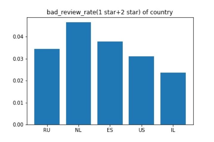 评价等级分布 ——行业好评率低 样品市场中共有五星好评8731条,四星好评994条,三星中评254条,二星差评97条以及一星差评258条。该样品市场的总体好评率为94.11% (五星+四星), 差评率为3.44% (二星+一星)。可见行业好评率低。 买家来源分布 ——NL、IL市场潜力大 该行业中速卖通消费大国:俄罗斯(22.0%) 、荷兰(9.76%)和西班牙(9.72%) 的买家占比排名列居前三。除此之外排名第四的美国以及排名第五的以色列也有不少市场份额,占比为6.23%、6.14%。卖家可以重点关注荷兰与以色列市场,设计相应语言的海报、具有国家特色的文案等,吸引其买家流量,进一步扩大这两个市场。 国家差评率分布 ——荷兰差评率最高 从差评率的角度看:买家占比排名前五的国家中,以色列差评率最低,为2.37%,荷兰的差评率最高为4.66%。另外,买家排名第一的俄罗斯为3.43%,第三的西班牙差评率为3.78%,第四的美国差评率为3.11%。总的来说,除了以色列外的四个国家的差评率都较高。卖家需要综合参考这些数据,进一步分析原因,降低总体差评率。 常用物流分布 ——五大物流选择 再看物流方面,该样品市场的卖家选择的物流种类较多。其中,最受卖家欢迎的物流方式是中国邮政平常小包+,占比为34.81% 。其次是菜鸟超级经济-燕文、菜鸟超级经济,占比为19.75%、14.22%。另外,无忧物流-简易和中国邮政挂号小包也有不少卖家选择。卖家可根据不同国家的实际情况参照制定合适方案降低物流成本。 可销售趋势及舆情走向 ——平均星级在4.73上下 从上面的数据可以看出,近5个月来该样品市场的月新增评论数的情况。2019年3月的月新增评论数最高,为2243条。在2018年11月的月新增评论数最少,为1277条。两月评论数之间相差966条。再看平均星级数,该样品市场的平均星级数保持较稳定,在4.73左右波动。2018年11月的平均星级数最高,为4.76。2019年3月的平均星级数最低,为4.71。 差评评论分析 ——商品描述需要优化 上图为样本的差评词频图。根据词频图中出现频率较高的“small”“receive”“come”等词,再联系产品的商品评论,可以分析出买家给予差评的主要原因为物流速度慢、商品质量差、商品实际与描述不符。另外,还有买家因卖家发错商品、商品气味大而作出差评。根据差评原因,卖家应在选品上注重产品质量,优化产品详情页描述,真实描述产品的属性等,从而减少差评。
