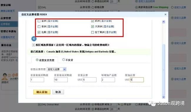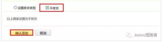 6、对于难以查询妥投信息、大小包运输时效差的国家,你可以选择“不发货”→“确认添加”即可屏蔽该国家/地区,如下图: