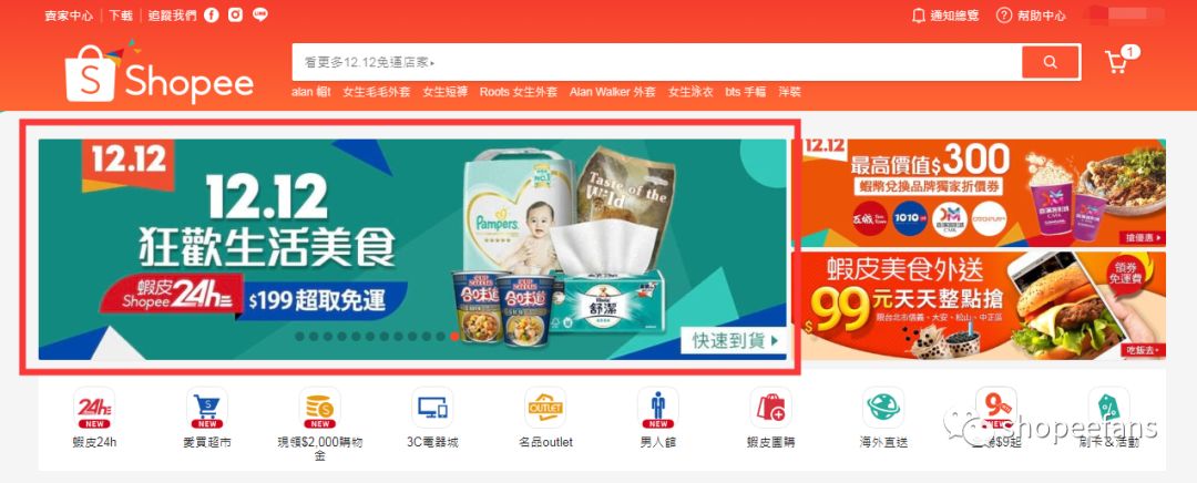 A: 可以虾皮的首页或是品类活动专区看到商品。