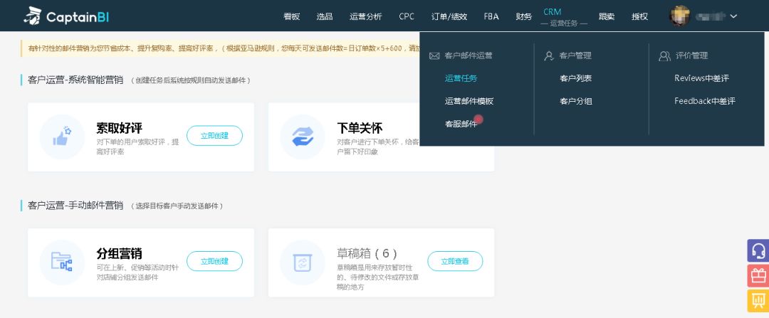 A product manufacturer posts a review of their own product, posing as an unbiased shopper A shopper, unhappy with her purchase, posts multiple negative reviews for the same product A customer posts a review in exchange for $5 A customer posts a review of a game, in exchange for bonus in-game credits A family member of the product creator posts a five-star customer review to help boost sales A shopper posts a review of the product, after being promised a refund in exchange A seller posts negative reviews on his competitor's product An artist posts a positive review on a peer's album in exchange for receiving a positive review from them 总结起来就是: 不可以给自己的产品留评或者给竞争对手产品留差评 不可以给同一个产品留多个差评 不可以直接提供奖励或优惠券换取review,或以奖励、退款形式要求买家修改差评 不可以利用亲朋好友的买家账号为自己的产品留评 不可以直接向买家索取好评 不可以和其他卖家以交换评论的方式互相留评 如何获得新的评论? 目前亚马逊自己的测评服务有Early Reviewer Program和Vine Program,因为他们是亚马逊自己的服务产品,由此产生的评论权重相对普通评论来说会比较高,但是参与这两项计划的门槛也高。 Early Reviewer Program 这个项目主要是来帮助美国站点没有review或review很少的商品获取评价,限有品牌备案,并且reviews少于5个、商品单价不低于15美金的ASIN才有资格参加。 但它有个要命的缺点,这项计划由亚马逊安排相关的买家写review,以1到3美元的购物卡作为报酬,然而卖家无法直接于这些reviewers沟通,被邀请的买家也可以不写,也可以写中差评。 Vine Program 目前仅支持VC、VE账号,通过Vine计划的获取的review会永久留在产品页面上,并且占有最高的权重,优质的Vine评论对于产品转化率有极大帮助。但是通过不一定Vine计划获取的评论并非一溜的好评,整个评测周期也比较长,费用也比较高。 所以对于一些中小卖家来说,通过对自然销售的买家进行邮件索评也是相对安全、性价比高的获评方式。 (一)获评方式 把握每一个自然销售是重中之重,但是并非售后发索评邮件就能达到理想效果。最好是在每产生一个订单之后,向买家发送邮件关怀,首先感谢购买,其次可以对自己的品牌做简单介绍,此举目的在于增加买家好感度,特别是客单价高的商品;在到货后的两三天,通过邮件向买家询问产品是否满意,暗示对方留下评论,但不能直白地请买家给好评。 当然并不是这么简单,不同级别的买家也需要区别对待,比如针对单次购买的新客户、多次回购的老客户,所发送的邮件内容需要有所区别,另外,索评对象最好过滤给过差评、恶意退款的买家。 船长的老用户们应该都用过【CRM】这个功能,以上操作在船长【CRM-客户邮件运营】功能中都能够轻松实现。另外船长建议大家对现有订单的买家做详细的分组管理,更有利于后期进行邮件营销。 另外还可以适当利用其他买家账号为自己的产品留评,就跟找人刷单差不多,虽然这看似违反评论政策,但是在评论极少的情况下还是可以小心操作的。 如果是亲朋好友的账号,要确保你们之间没有在其他社交平台上没有直接互动的痕迹,这些买家账号留评率不要超过10%,不要有频繁的评论操作特别是不要使用同一买家账号为你的多个产品留评。 如果是找不认识的人刷单留评的,现在陷阱太多大家自个儿小心吧。 (二)留评内容 如图,listing页面评论区的【by feature】这一栏是对产品特征的归纳和评分,据说是亚马逊通过review内容抓取相关的关键词等进行评分总结的,这个部分可以帮助买家快速了解review的信息,快速的判断这个产品是不是有她想要的特征。 所以卖家在铺review内容时,在内容中要突出产品卖点,一个卖点利用一个统一的关键词,比如形容颜色明丽,在一则review中用了“brightly”,在另一则的内容中依然用“brightly”,不要用“colorful”或其他同义词,这样可以扩大这个卖点被抓取为特征关键词的概率。 (三)移除差评 当评论内容全部与产品本身无关,比如买家因为FBA配送问题、服务相关问题给了差评,或者像“这件衣服和我想象的不一样”这种过于主观的评论,还是可以通过对应评论下方的“report abuse”或者直接联系community-help@amazon.com说明原因并请求移除的。 review团队也有提到的是,卖家不能直接要求客户修改或删除他们的评论,但允许买家主动修改或删除他们自己的评论,并鼓励卖家跟踪评价,以便于为买家提供完善的售后服务,收到差评时,卖家可以根据内容的不满意程度,通过非亚马逊站内邮件向与买家取得联系,了解不满意的原因并且改进、满足对方的售后需求,最后提出修改评论的请求。 最后,如果大家有关于review优化相关的经验或建议,可以留言或私信船长,分享给大家之后会有小奖励der~