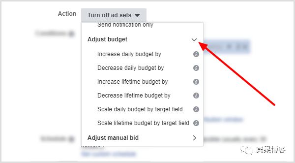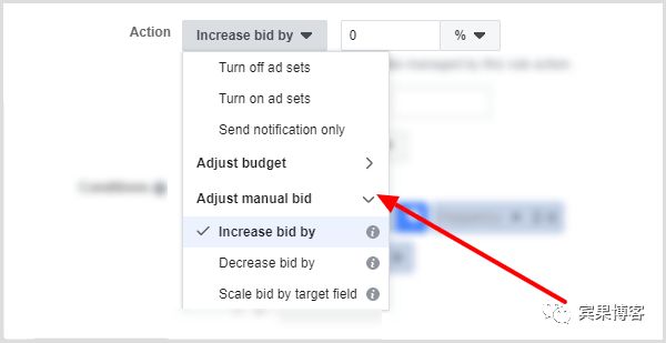 在满足条件时,您可以按一定百分比/金额增加或减少每日/终身预算或人工出价